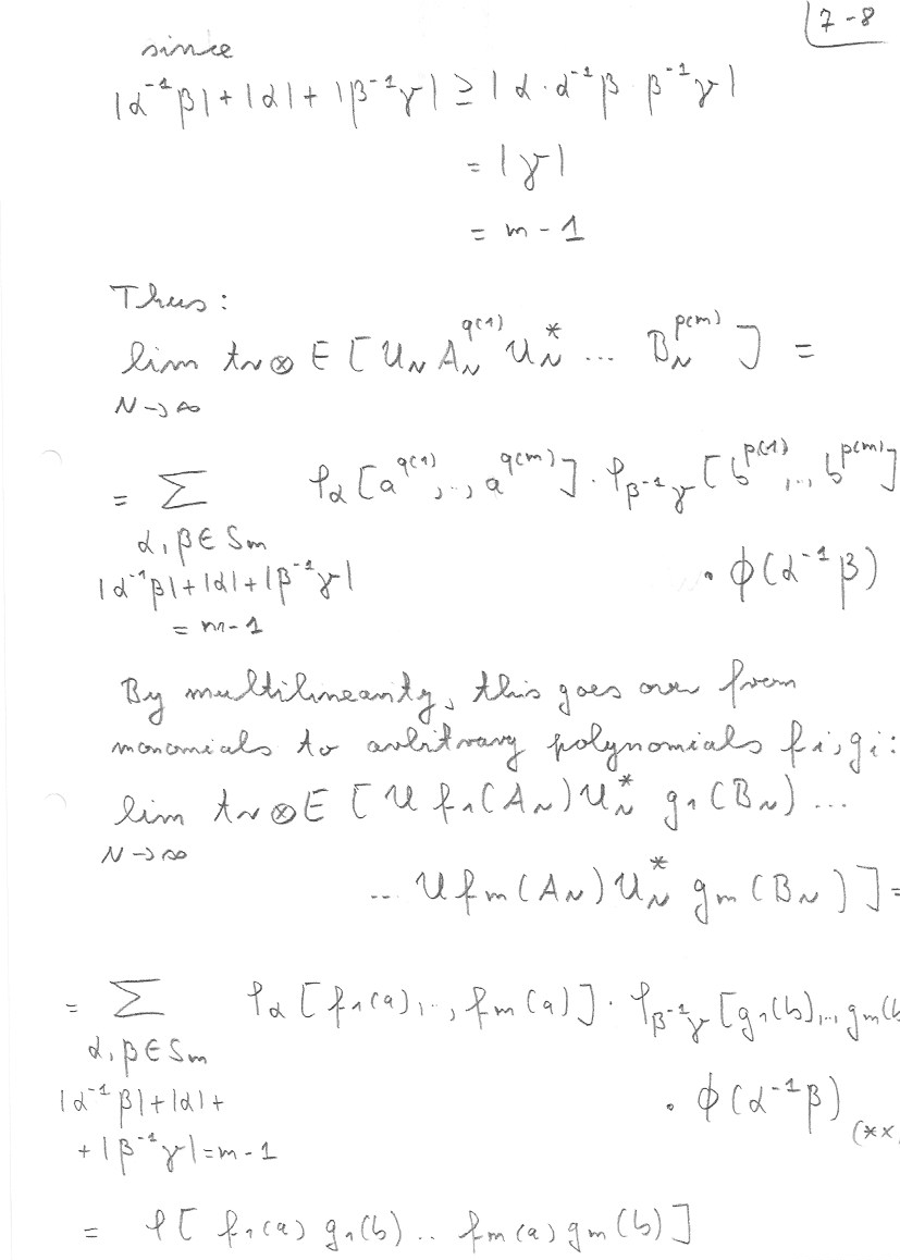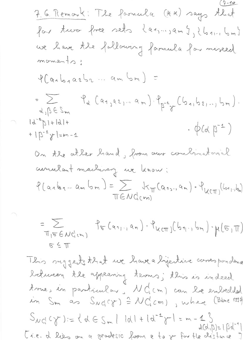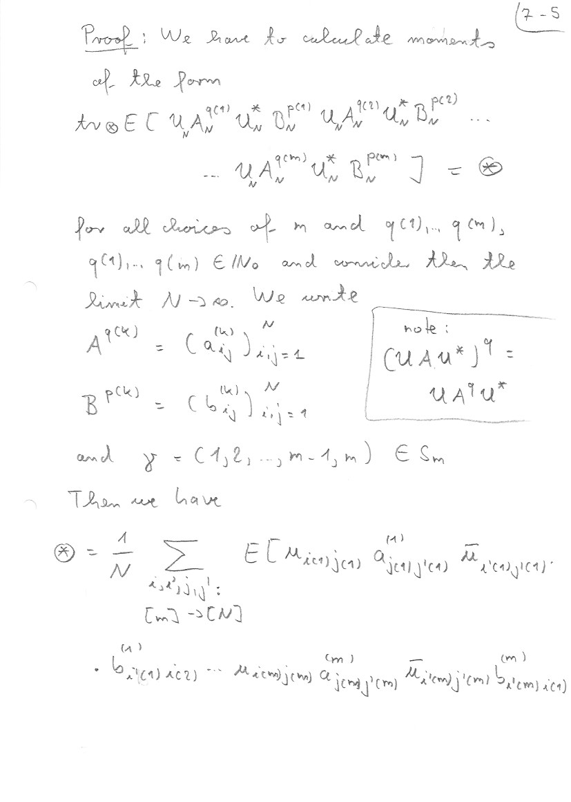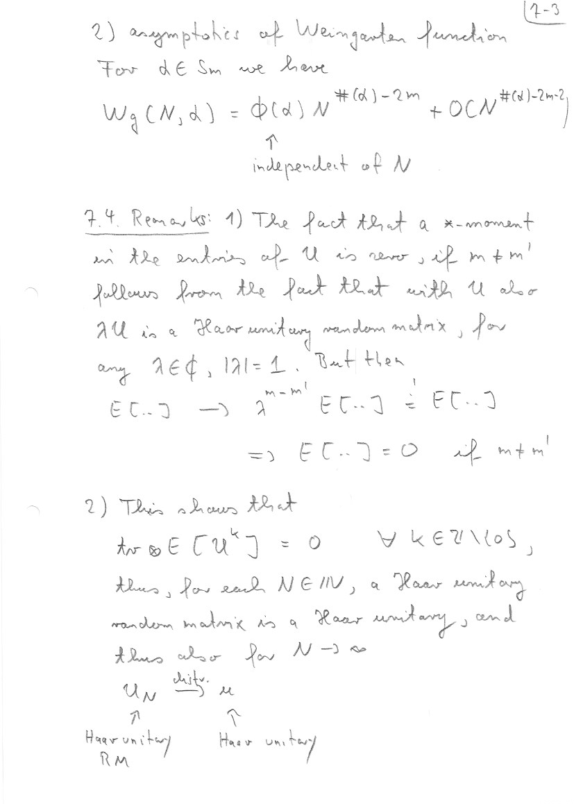 This section follows mainly Chapter 23 of my book with Nica. Details about the embedding of non-crossing partitions into permutations can be found there. At the end I also address the question of asymptotic freeness for Wigner matrices. Theorem 7.11 is from my book with Mingo, Section 4.4.